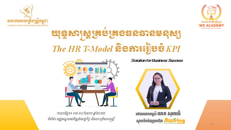 We had the pleasure of delivering a session on β€œStrategic HR Management” for Women Entrepreneurs Academy (WE Academy) under the Cambodia Women Entrepreneur Association-CWEA, Batch II on 17–18 January 2026 by Mrs. LEAP Somaly, Founder of ASPIRING at the Women’s Economic and Entrepreneurship Development Center, Phnom Penh, Cambodia.